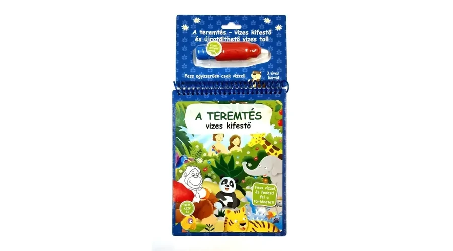 A könyvhöz mellékelt, vízzel újratölthető ecset-tollal lehet átfesteni a könyv fehér-áttetsző felületét, amin a víz hatására előtűnnek és megelevenednek a színek. Részletről részletre kelnek életre a történet mozgalmas képei, amit a gyerekek a felfedezés örömével fogadnak. 3-8 éves gyerekeknek ajánljuk. Száradás után a képek kifehérednek és eltűnnek, így a könyv sokszor újrafesthető! Függőlegesen lapozható, spirálos, vastag lapú kifestő 5 történetmesélő és 1 összefoglaló interaktív oldallal. Vízzel újratölthető tollal szállítjuk!