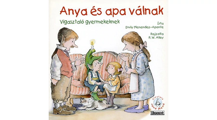 A válás senkinek sem könnyű, legkevésbé a gyermekeknek. Az Anya és apa válnak című könyvünk a gyermekeket gyengéden átsegíti ezen a kínos változáson. Együttérző, de realisztikus útmutatással a szerző, Emily Menendez-Aponte (ö maga is elvált szülők gyermeke) megvigasztalja a gyermekeket, mert hangsúlyozza, hogy a válás nem az ő hibájuk, és hogy szüleik mindig szeretni fogják őket, és törődni fognak velük. Ötleteket ajánl a csalóka érzések és kényes problémák (hűség-konfliktusok, új napirend stb.) megoldására. A könyv kedves manóillusztrációi és a gondolattal teli belvilág nagyszerű eszköz, hogy a gyermekek felfedjék és kifejezzék a válással kapcsolatos érzéseiket.