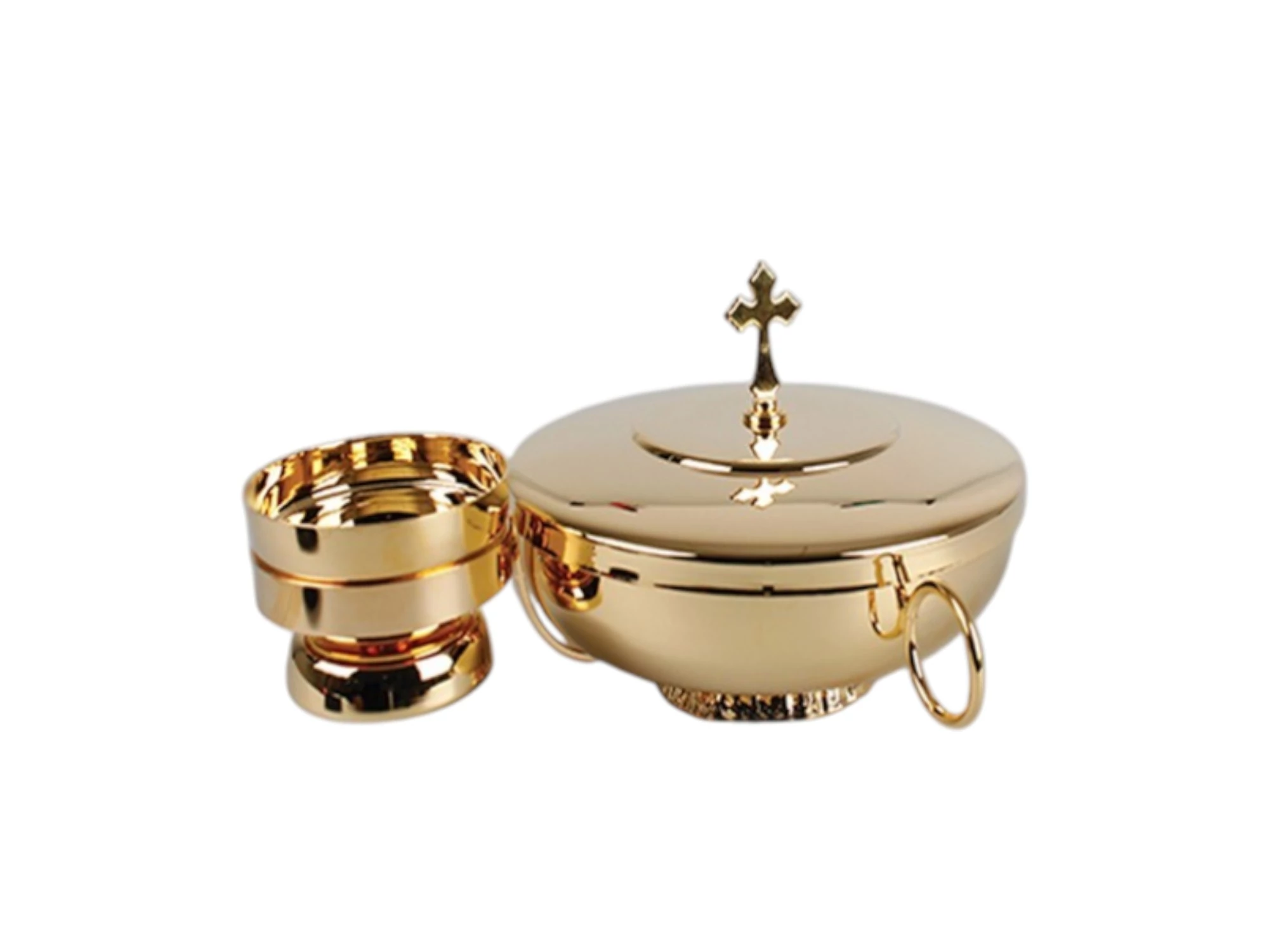 Aranyozott áldoztató két szín alatti áldoztatáshoz, kb.200 ostya űrtartalommal.