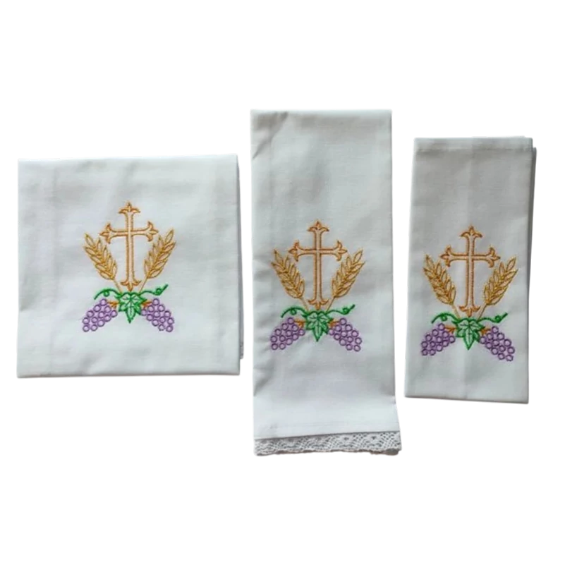Hímzett miséző garnitúra Korporálé, kehelykendő, kéztörlő. Palla nem tartozik a csomagba.