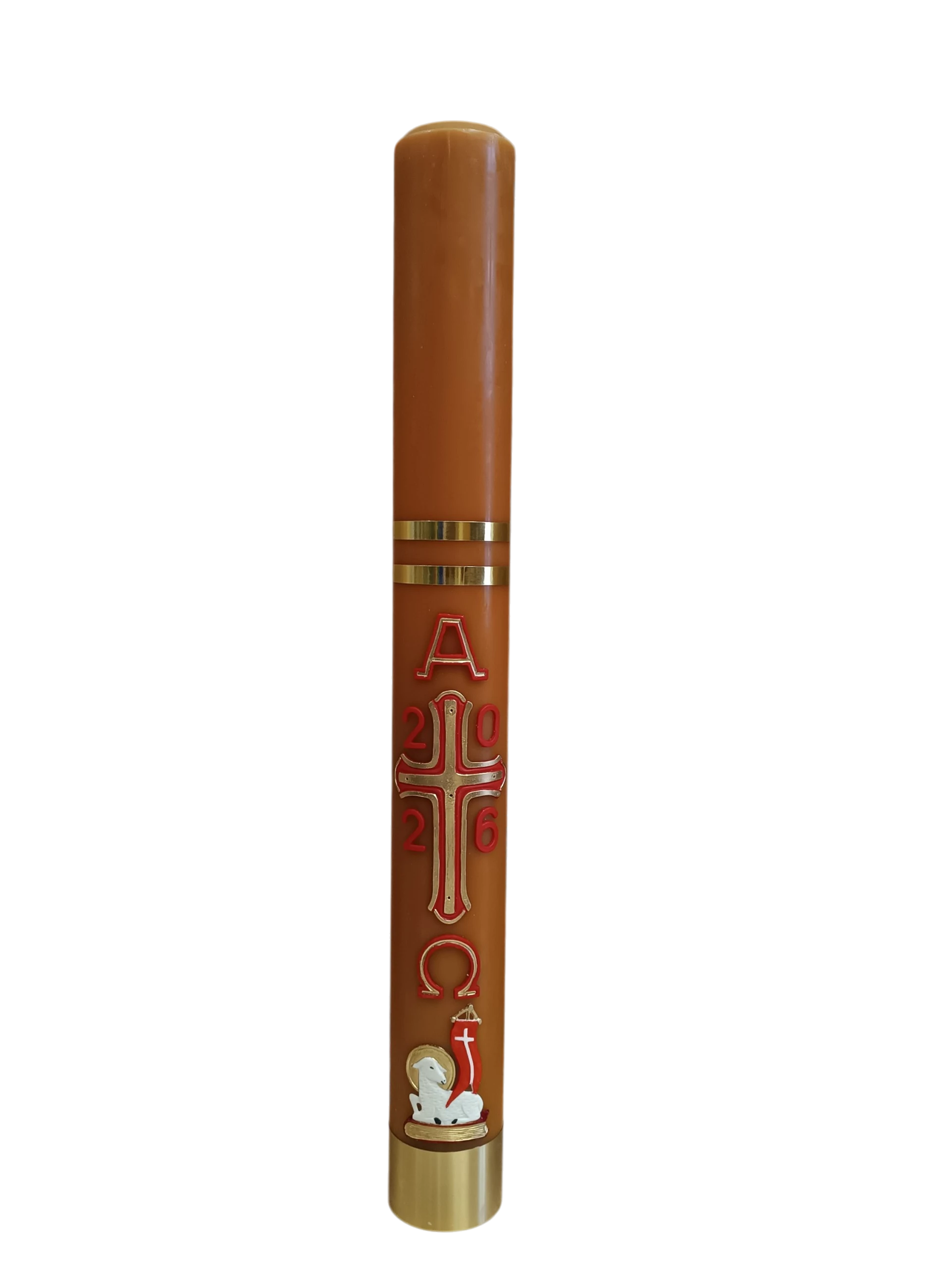 Viaszdíszes húsvéti gyertya 10x90 cm. Fehér, vagy méhvisz színben, 2026 évszámmal, Tömjénszegeket tartalmaz. Szállítás, budapesti átvétel megbeszélés alapján.