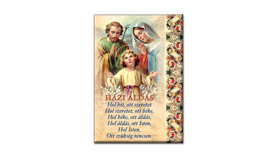 Alapanyag: műanyag; Magasság: 8,0 cm; Szélesség: 5,5 cm; Téma: házi áldás, Szent Család