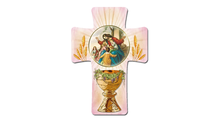 Kereszt formájú faplakett elsőáldozásra