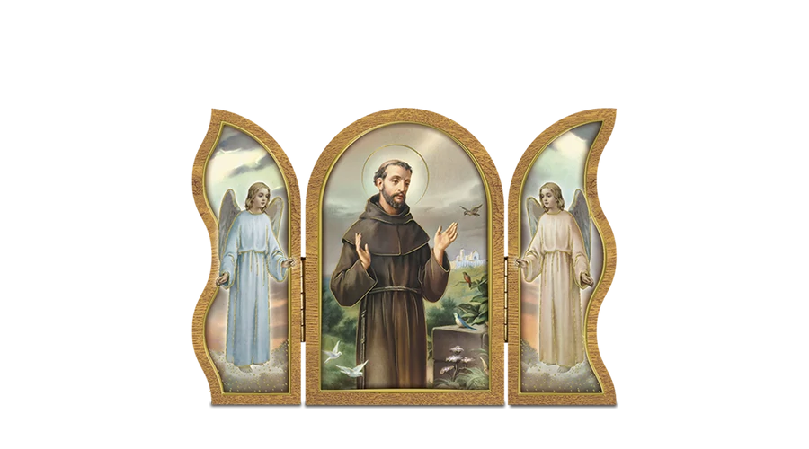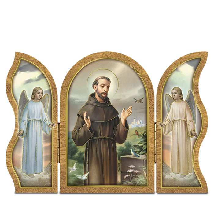 Szárnyas faplakett 3x4,5 cm (Szent Ferenc)