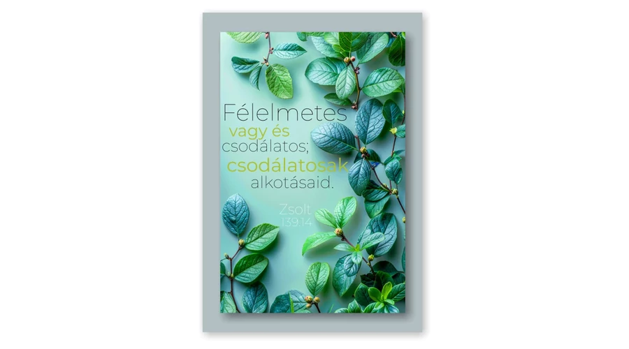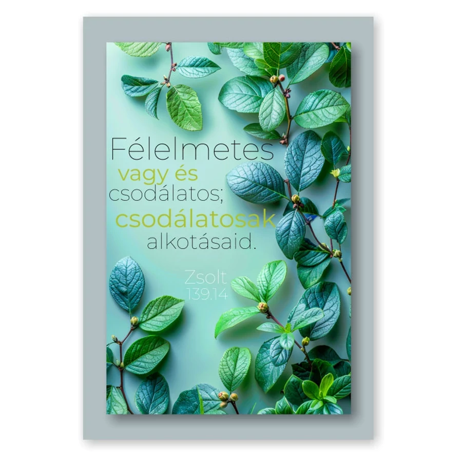 Fényes felületű kártya bibliai idézettel. Bátorít és emlékeztet az Úr szeretetére, jóságára, hatalmára. Méret: 9 x 6 cm