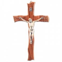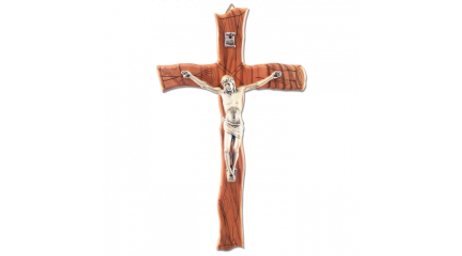 Kereszt, fa, oliva, díszes 22cm.