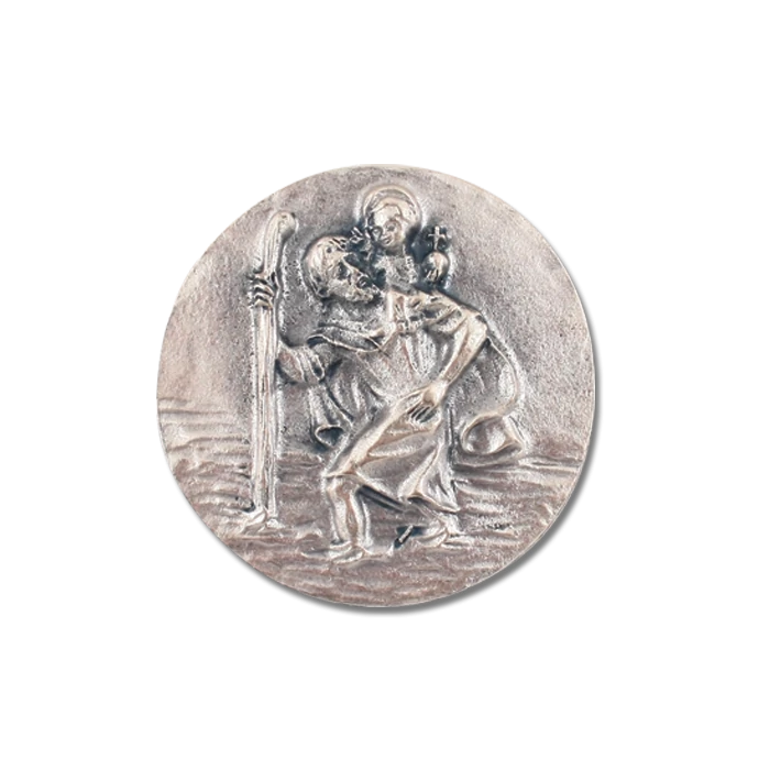 Alapanyag: fém; Magasság: 4,0 cm; Szélesség: 4,0 cm; Téma: Szent Kristóf