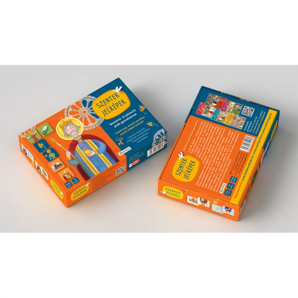 20 pár kártyát tartalmaz. Találd meg melyik szenthez melyik jelkép tartozik. Fejleszti a memóriát, a figyelmet és játék közben megismerkedhetsz a szentekkel.