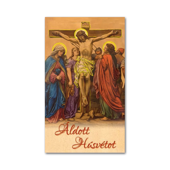 Igényes kivitelű, szép megjelenésű színes szentkép aranyozott kontúrvonalakkal. A kártya mérete 10,5x6 cm
