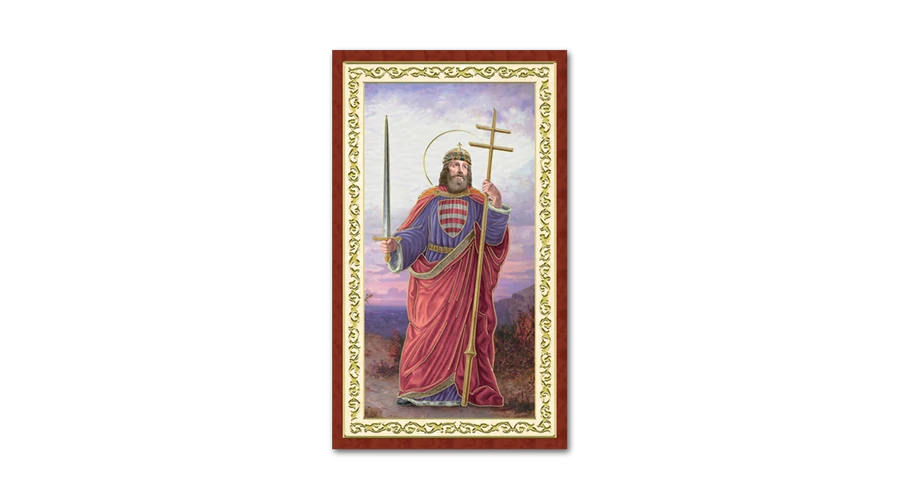 Igényes kivitelű, szép megjelenésű színes szentkép aranyozott kontúrvonalakkal. A kártya mérete 10,5x6 cm