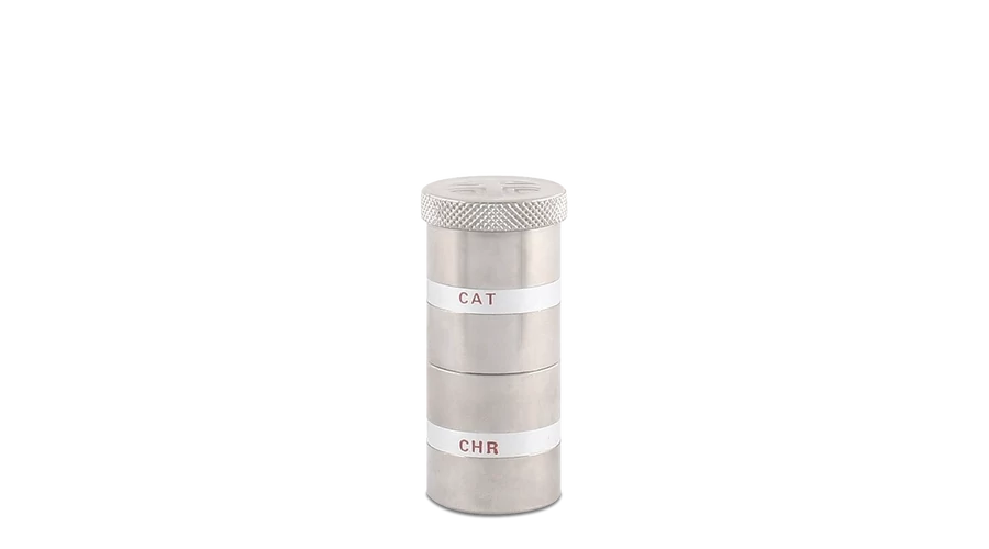 Egymásba csavarható szentolaj tartó. Mérete: 26x60 mm.